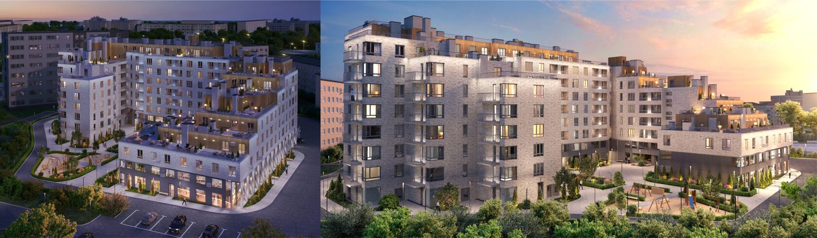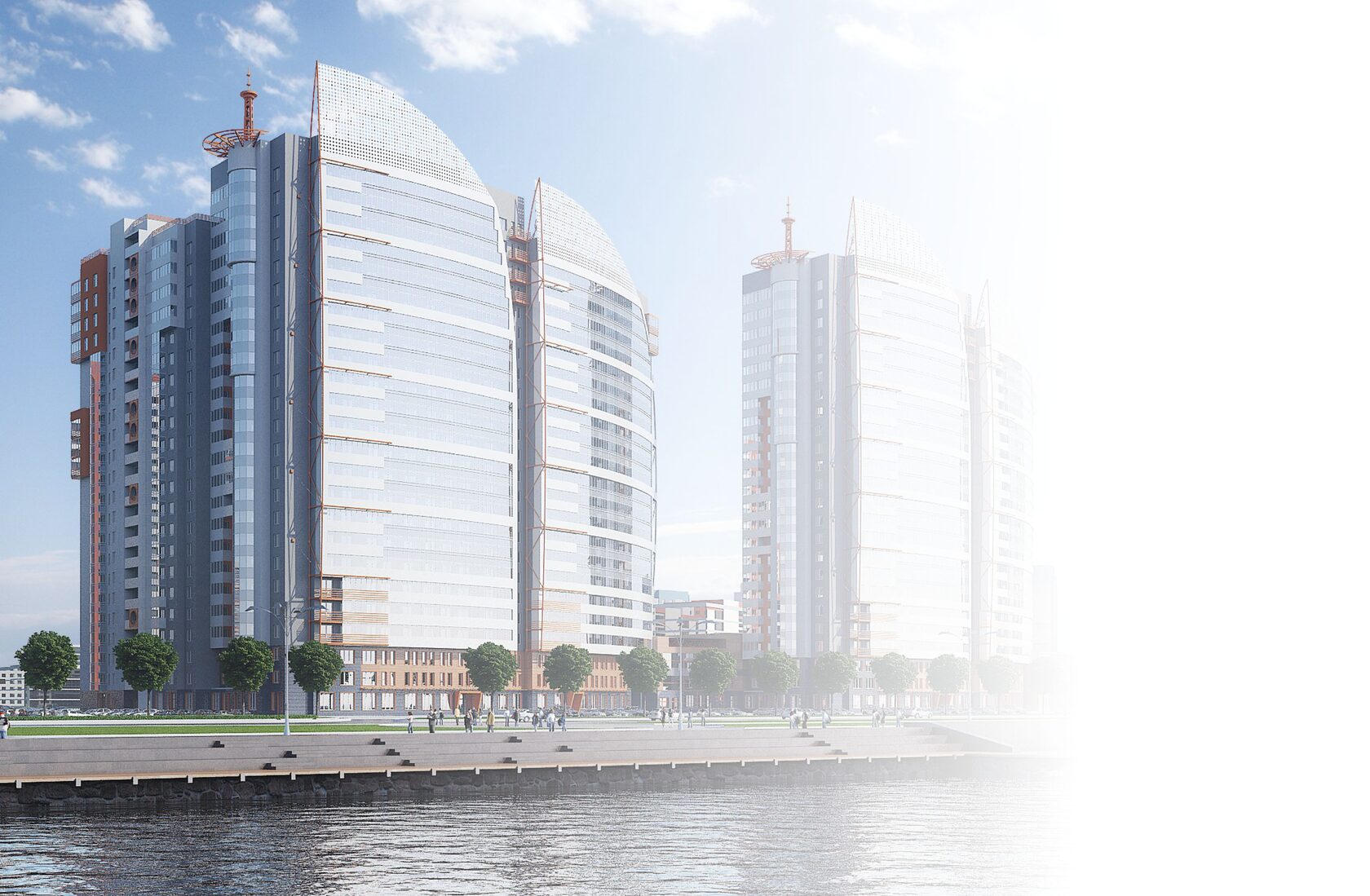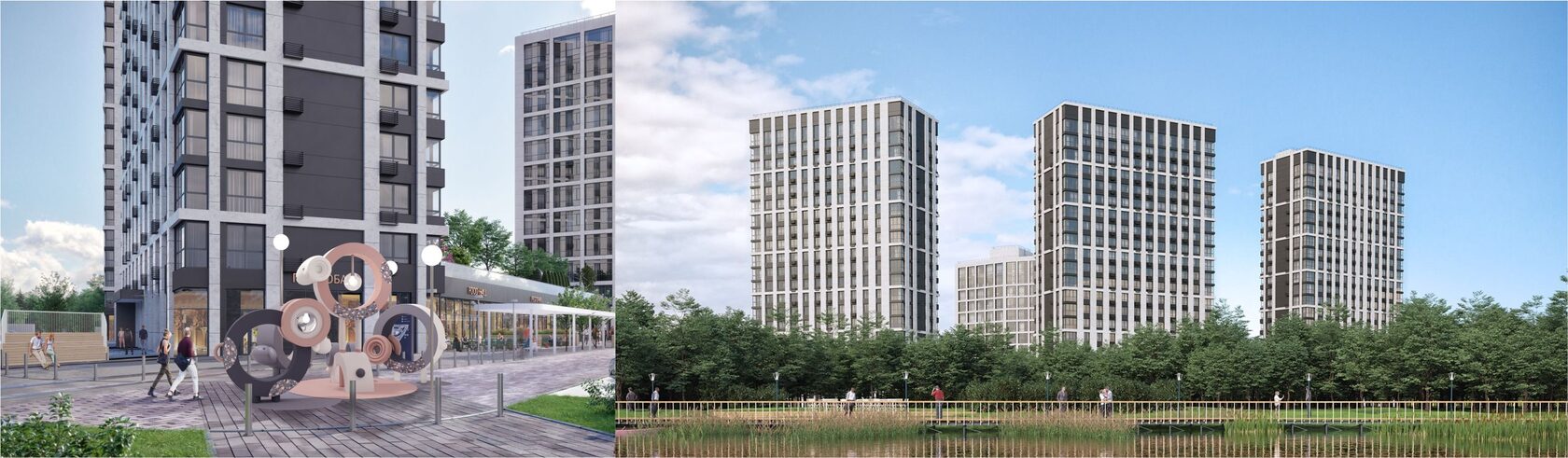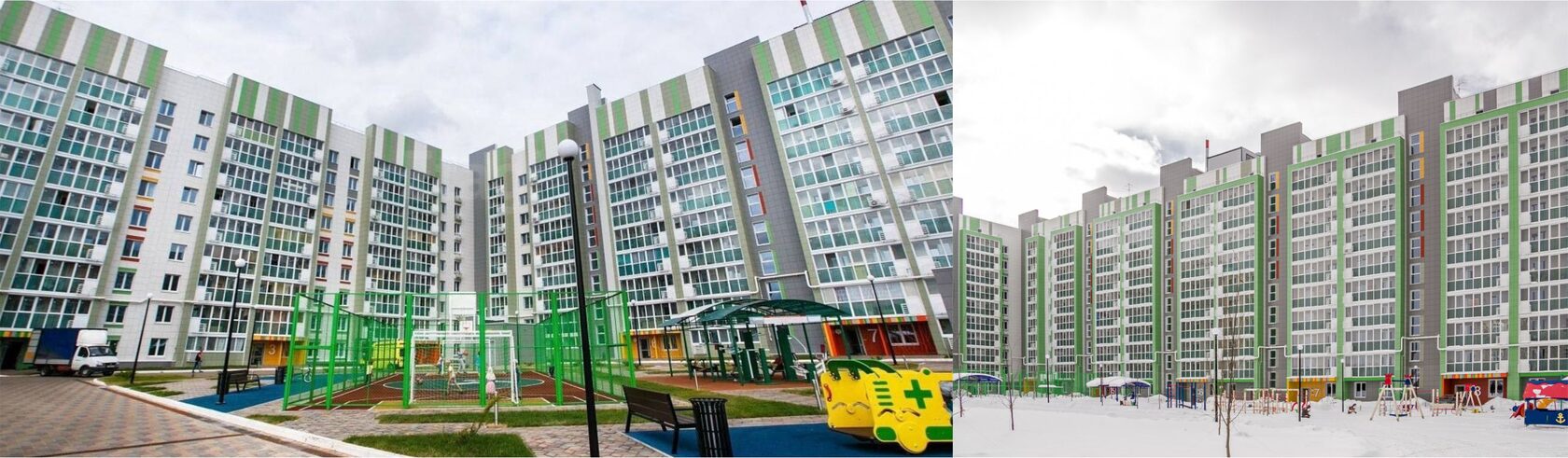 Элементы наружной отделки формируют единую линию мест общего пространства, а индивидуальность жилому помещению придается внутренней отделкой двери.